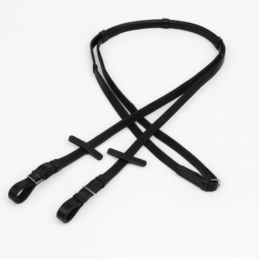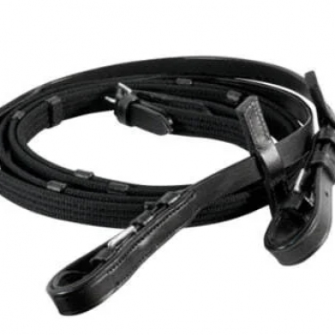 Повод тесьмяный с нашивками. Повод выполнен из прочной ременной ленты. По всей длине повода есть кожаные ограничители чёрного цвета, которые гарантируют безопасность и комфорт как для всадника, так и для лошади.Ширина повода 20 мм. Пряжки на кожаных окончаниях повода (фурнитура) серебристого цвета.