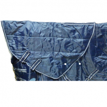 Тёплая попона с наполнителем 100 гр. (капор с наполнителем 50 гр.) плотностью верхней ткани 420 Den может использоваться как для прогулок, так и для денника в прохладное время года. Подкладка - впитывающая смесовая ткань с большим содержанием (90%) хлопка. Верхняя ткань выдержит небольшие осадки. Попона с подпузными ремнями, ножными эластичными ремешками, большим нахвостником. Регулируемая застежка на карабинах и липучке. Съемный капор крепится с помощью полуколец и эластичных ремней. Широкий воротник из мягкого искусственного меха.