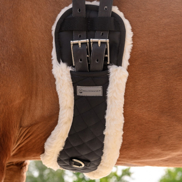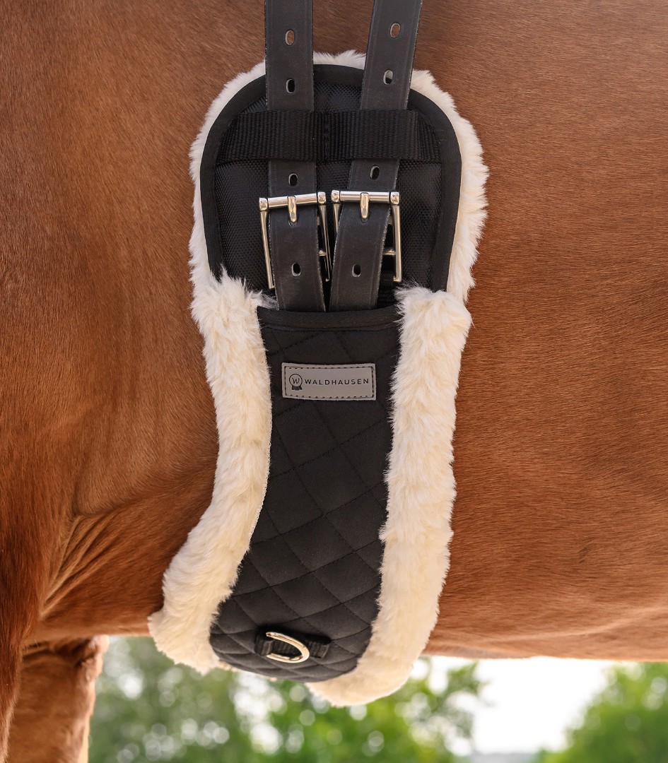 Широкая и мягкая подпруга из текстиля с иск.мехом без резинок. Подпруга пропускает воздух, равномерно распределяет нагрузку, защищает от избыточного давления. Прочная фурнитура серебряного цвета, на пряжках ролики для более удобного использования. Рекомендация по уходу: возможна машинная стирка по 30 градусах.