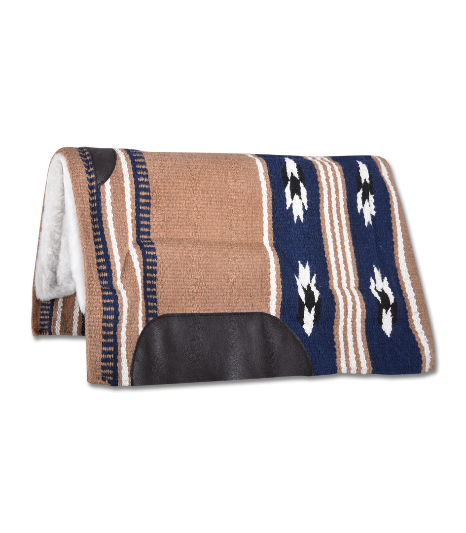 Максимально толстый плотный вестерн вальтрап. Верхняя ткань из высококачественной шерстяной смеси (60% шерсть, 40% полиэстер), подкладка искусственный мех (50% полиакрил, 31% полиэстер, 8% шерсть, 5,8% полиамид, 5,2% хлопок). Размеры: длина - 86 см, ширина - 87 см. Имеются нашивки из искусственной кожи на холке и в местах прилегания подпруг с двух сторон. Вальтрап обеспечивает комфорт для лошади при длительных верховых прогулках по пересечённой местности.