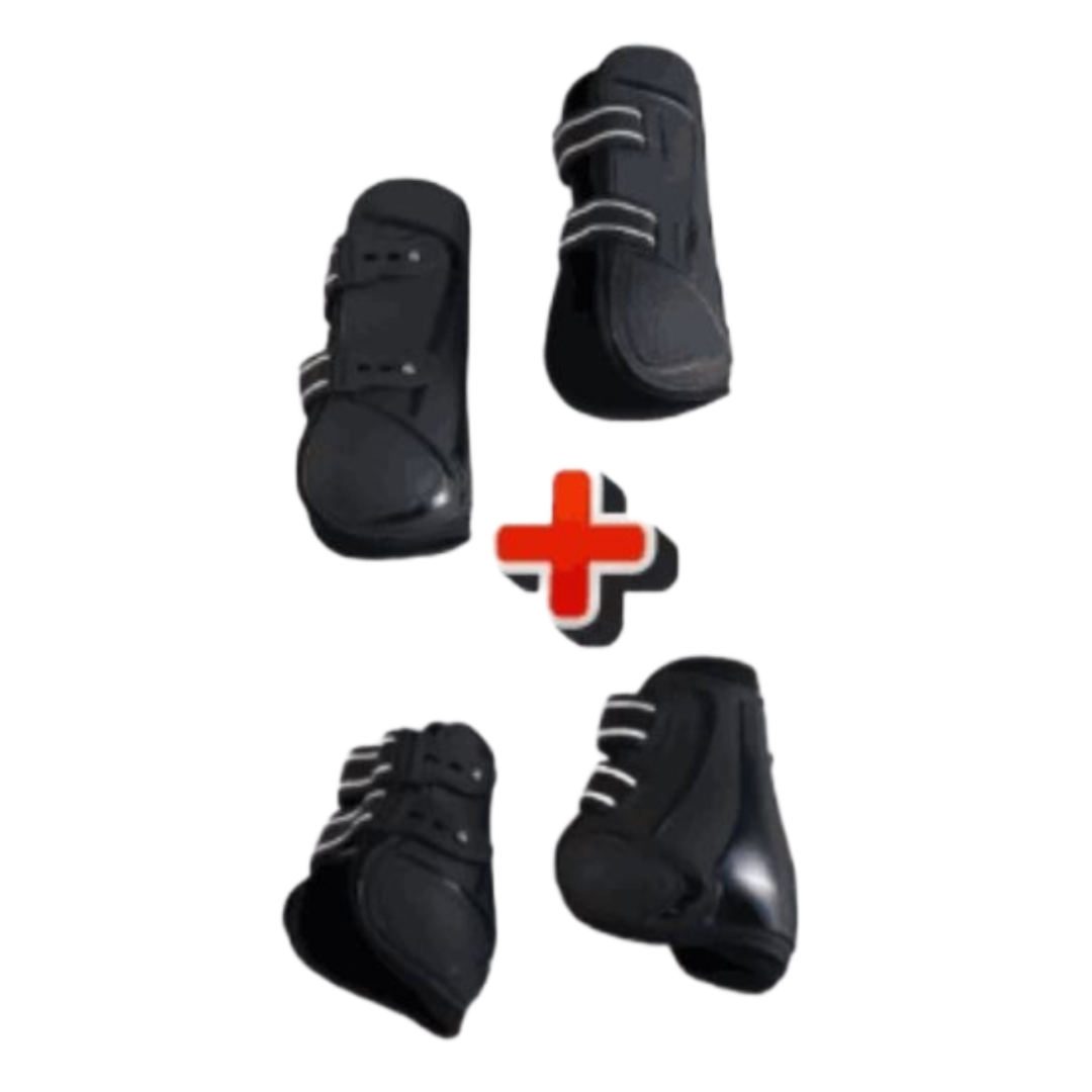 Спортивные передние и задние ногавки защищают ноги лошади от ударов, сохраняют связки и сухожилия. Идеальны для конкура, подойдут для ежедневных тренировок. Ногавки имеют анатомическую форму, состоят из ударопрочного пластика, фиксируются при помощи застек-крючков с эластичной резинкой, подкладка из неопрена.