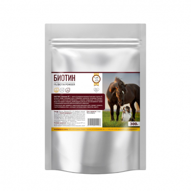 Биотин (витамин В7) - важный водорастворимый витамин группы В, который играет ключевую роль в обменных процессах организма лошади. Участвует в клеточном метаболизме и помогает превращать питательные вещества корма в энергию, необходимую для роста, восстановления тканей и поддержании высокой работоспособности. Стимулирует рост крепкого и эластичного копытного рога, снижает ломкость и растрескивание копыт, улучшает состояние кожи и шерсти животного.