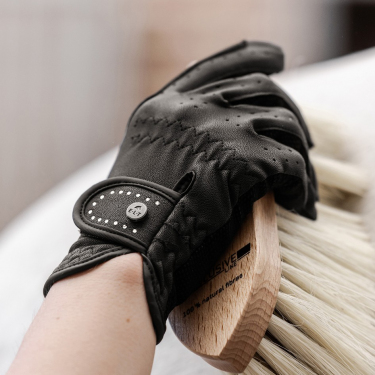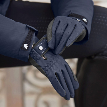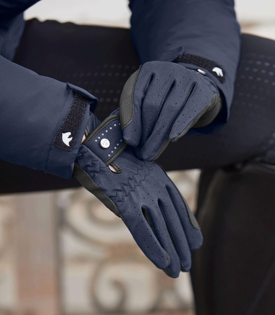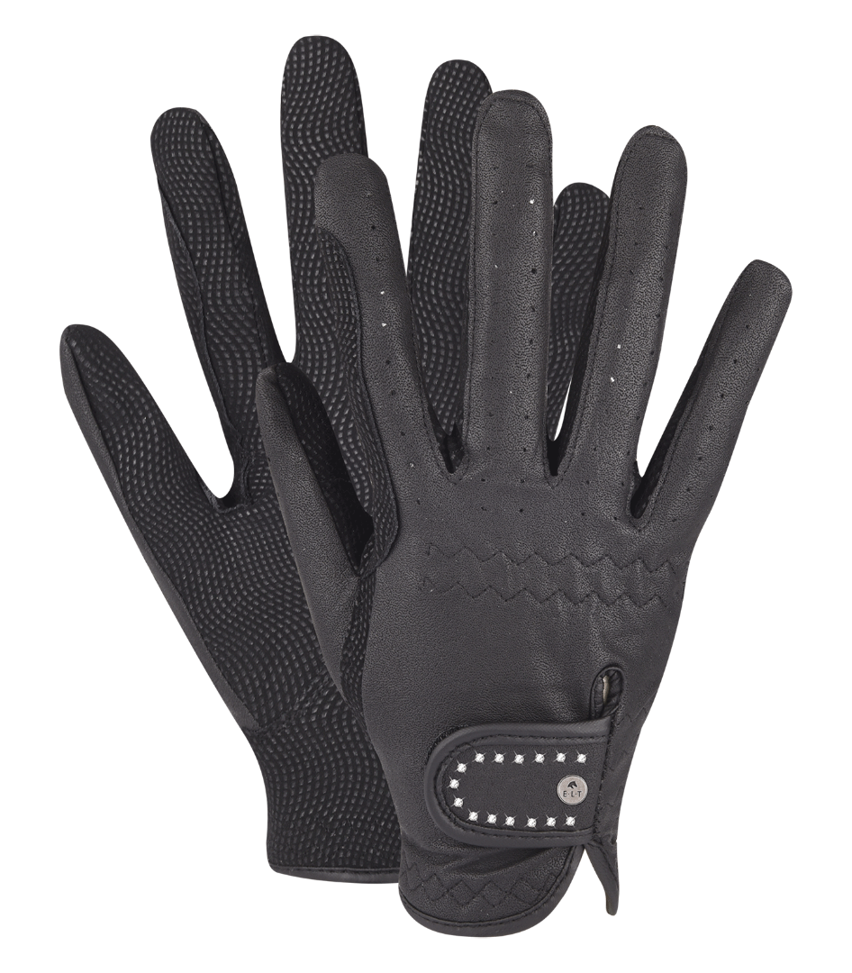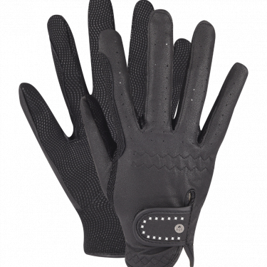 Элегантные детские перчатки для верховой езды выполнены из имитации кожи, дополнены вставками в местах пролегания повода для лучшего удержания поводьев.
